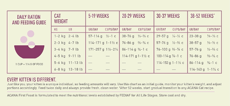 Specially crafted for your kitten, our ACANA™ First Feast Recipe helps support your kitten’s growth and development. Rich with 70% quality animal ingredients1 including fresh or raw chicken and whole herring, First Feast has the animal protein your kitten needs to grow up strong. This nutrient-dense recipe also helps support key health benefits for your kitten, including healthy skin and coat, healthy muscles and bones, and eye and brain development. Nurture your kitten with a recipe tailored to help them grow up healthy and happy with ACANA First Feast!